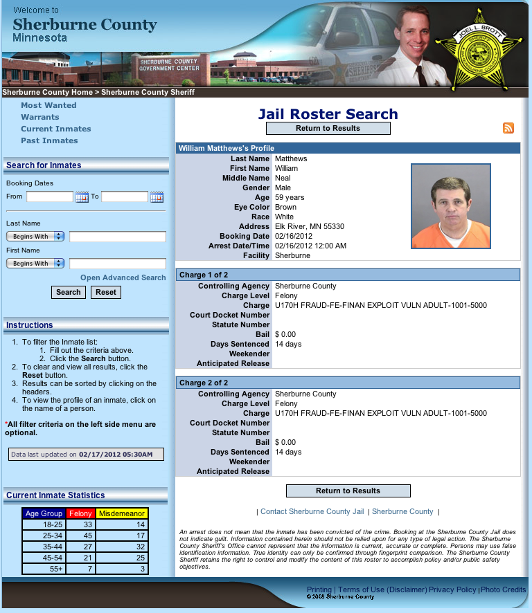 Download Dr. Bill Matthews Felony Case File View Dr. Bill Matthews Jail Mug Shot 02/16/12 Download Dr. Bill Matthews Jail Mug Shot 02/16/12 Download Initial Dr. Bill Matthews Jail Record 02/17/12 Download Final Dr. Bill Matthews Jail Record 02/19/12 View Dr. Bill Matthews Initial Jail Record as of 02/17/12 View Dr. Bill Matthews Final Jail Record as of 02/19/12